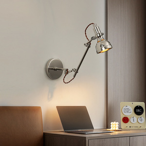 レトロなインダストリアルスタイル鋳造アルミロングアーム伸縮式折りたたみベッドサイド読書壁ランプカフェ雰囲気寝室装飾ランプ