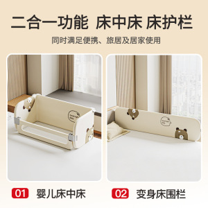 旅行用ベッドフェンス、ポータブル、取り付け不要、ベッドインベッド、落下防止、新生児ベッドサイドフェンス、ベビーベッドガードレール、片面
