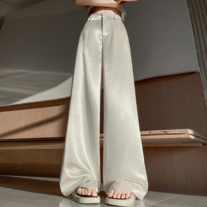 在庫ありアセテートサテンレースワイドレッグパンツ女性用2025ハイウエストストレートパンツカジュアルナローバージョンアイスシルクフロアレングスパンツ
