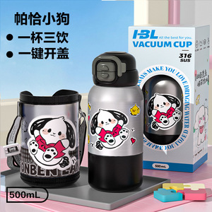 316ステンレス保温カップ漫画ダブルドリンク子供水カップ高颜値大容量かわいいポータブルストローカップ