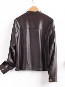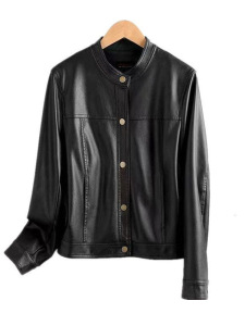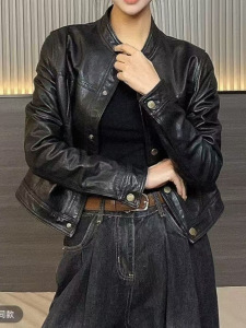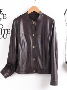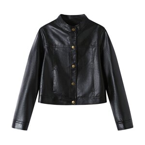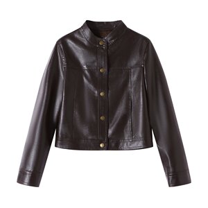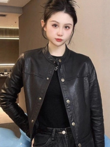 Haining レザージャケットレディースジャケット韓国風ショートショートスタンドカラーバイカーレトロレザージャケット 2025 春と秋の新スタイル