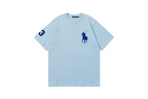 クロスボーダーファッション新製品RLラフポニーロゴウォーホースヘンリーシャツ男性と女性のための多用途カジュアルワンピースドロップシッピング