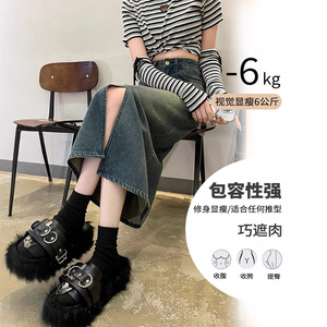 デニムスカート レディース スカート 2025 夏 薄手 ハイウエスト 痩身 セメントグレー スリット Aライン ヒップスカート ミドル丈