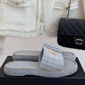 貿易Cファミリー小香風チェーンフープダブルレタースリッパ25夏レースワンライン厚底織りスリッパ