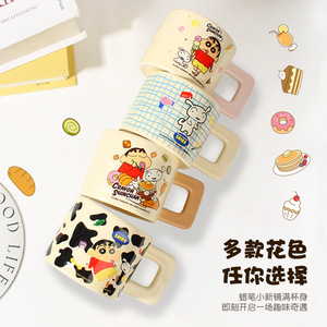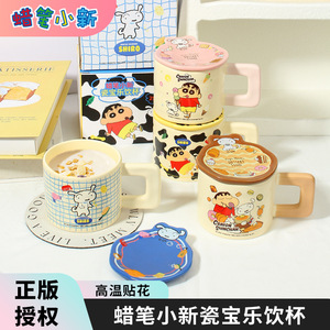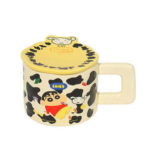 クレヨンしんちゃん セラミックマグ 蓋付き 高価値コーヒーミルクカップ ハンドル付き大容量セラミックウォーターカップ