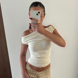 国境を越えた欧米風女装2025夏の新商品純色一字襟しわ修身袖なしtシャツ上着