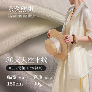30 カウントテンセル無地生地テンセルポリエステル混紡軽量生地カジュアルシャツドレス婦人服生地