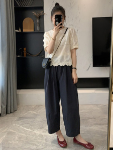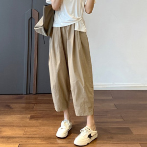 女性用キャロットパンツ、夏用薄手9点ハイウエスト、小柄な人向け、防蚊・日焼け止め、ゆったりオーバーオール、ハーレムスウェットパンツ、アプリコット