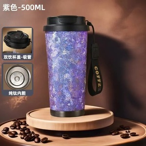 Enbang 純チタン断熱カップ、男性用、高級ウォーターカップ、ティーカップ、女の子用、見栄えの良いポータブルコーヒーカップ、大きな氷の花