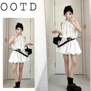 2025年夏服、少し太ったmmフリル立体ドレス、小柄なウエストのノースリーブベスト、ふわふわスカート