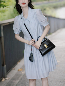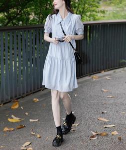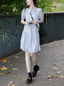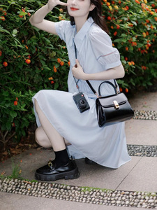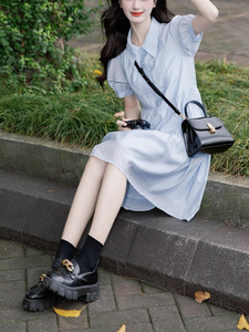 ブルーフレンチシャツドレス2025夏の新しい気質ドレス女性用