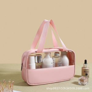 PU レザー透明化粧品バッグポータブル新しい化粧品収納袋女性の旅行防水スキンケア製品トイレタリーバッグ
