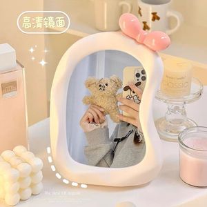 クリーム風リボン化粧鏡デスクトップミラー学生寮化粧鏡はプラスチックミラーを立てて掛けることができます