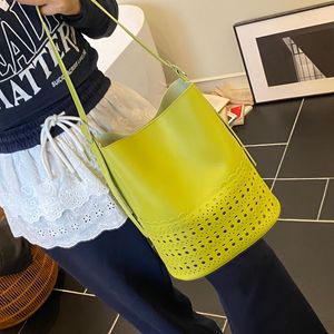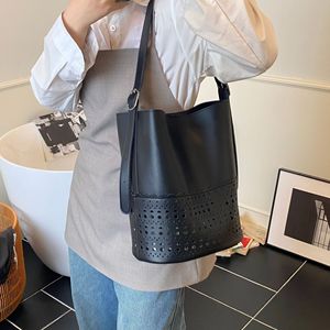 韓国東大門イン大容量ショルダーバッグトレンディなサブバッグニッチバケットバッグ中空デザイン脇の下バッグ
