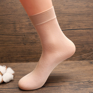 女性高齢者シルクソックスヒール付きミッドチューブ夏薄型耐摩耗性おばあちゃん黒肌色夏涼しく通気性