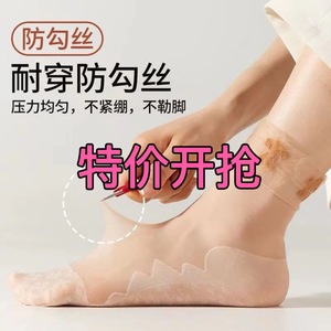 新款棉底丝袜女夏季水光袜松口短丝袜女士花边透气四叶草棉底丝袜