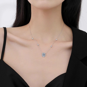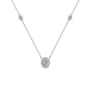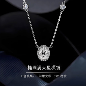 本物のモアッサナイトオーバルフルスターネックレス 925 スターリングシルバーネックレス女性の鎖骨チェーンガールフレンドのためのバレンタインデーのギフト