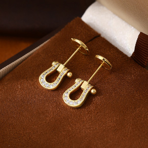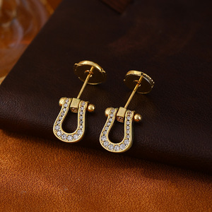 銀針馬蹄バックルアンティークスタイルイヤリングハイエンドの小さくて絶妙なイヤリングレトロ香港スタイルライトラグジュアリー2025新しいイヤリング
