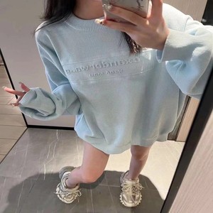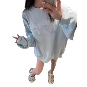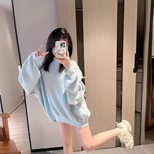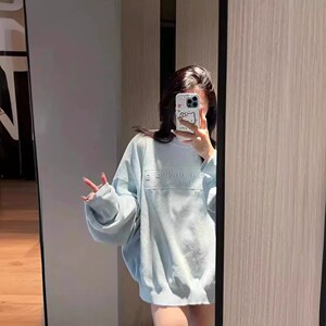 奶蓝糯叽叽浮雕字母logo宽松廓形卫衣圆领毛衣中长男女同款加厚
