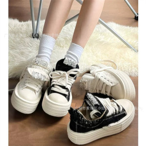 2.0 Zhao Lu. Si Tong の DIY スマイリーフェイス キャンバス シューズ プラットフォーム プラットフォーム カジュアル ホワイト シューズ レディース 多用途スニーカー