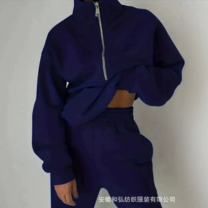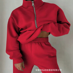 ヨーロッパとアメリカのクロスボーダーファッションカジュアルスポーツホームゆったりと快適なジッパーフリースニットスウェットシャツとスウェットパンツの女性用ツーピース
