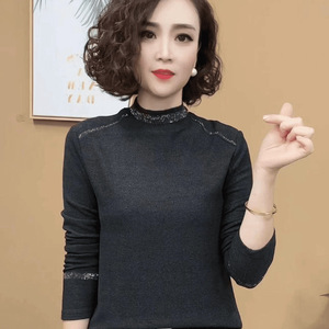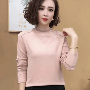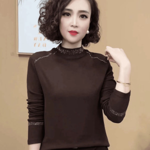 ヨーロッパ製両面ドイツベルベットハーフタートルネックホットダイヤモンド長袖Tシャツレディースボトリングシャツ秋冬新作万能長袖アウター