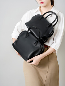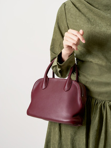 フレンチシンプル高级感通勤ボウリングハンドバッグ小众デザイン本革レディースシェルバッグ