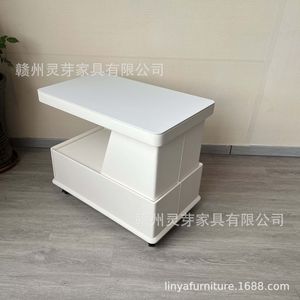 無垢材のモダンな可動式コーヒーテーブル、リビングルーム用ソファサイドテーブル、多機能で軽い高級感のある可動式小型カート