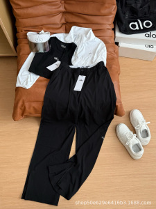 在庫あり 25 夏新作 Alo レターウェビングウエストカフスパンツスリムで多用途な女性用カジュアルパンツ