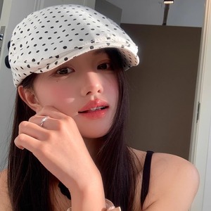 水玉模様の女性用フォワードハット、春夏、日本風レトロな大きな頭囲、リバースベレー帽、韓国風、万能小顔帽子