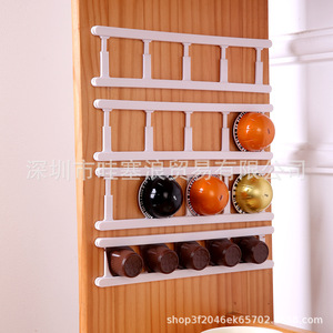 国境を越えた伸縮可能な粘性コーヒーカプセルラックは、カプセルコーヒー壁掛け穴なしコーヒー収納棚を収容できる