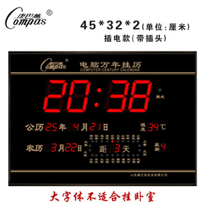 Kangbas 衛星タイミング電子壁時計リビングルーム壁掛け LED デジタル永久カレンダーホーム大型デジタル情報カレンダー