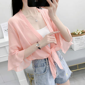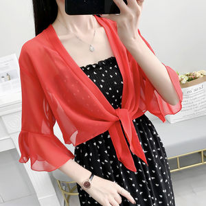 夏の新作防寒服、ショートシフォンカーディガン、薄手ショール、大きいサイズコート、おしゃれなアウターウェア、ブティック婦人服