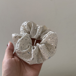 1#グレーのヘアゴム ホワイト クリスタル ヘアゴム