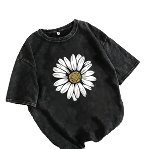 貿易デイジーひまわりプリントゆったりシンプル気質万能レディースラウンドネックショルダー半袖Tシャツ