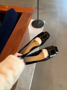 現物羊皮版 ~ 角ボタン通勤太ヒール角頭気質ハイヒール単靴女性本革ソフト底メアリー珍靴