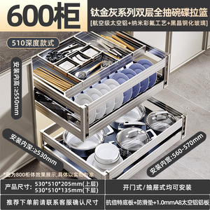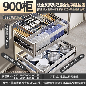 バスケットキッチンキャビネット二段引き出し式ボウルバスケットボウルラック食器キャビネット収納食器棚内蔵食器深キャビネット
