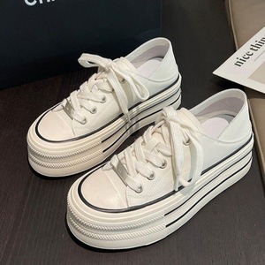 女性用の白い靴、2025春の新しいスタイル、厚い底、柔らかい底、プラットフォーム、気質、カジュアルシューズ、キャンバス Qujie