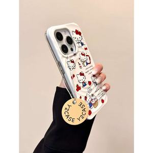 波状磁気ケース・漫画かわいい水玉模様のキティ携帯電話ケース iPhone16promax Apple 15 に適しています