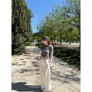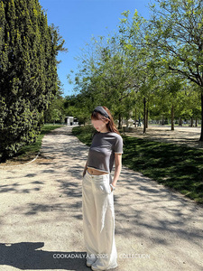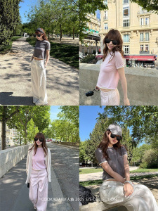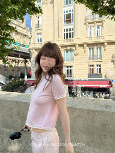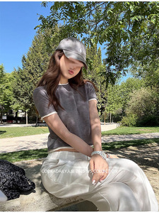 Cookadaily マーメイド リヨセル ウール フェイク ツーピース コントラスト カラー デザイン 半袖 ラウンドネック Tシャツ トップ レディース