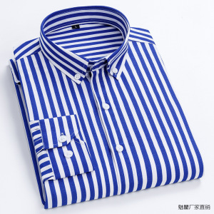 新しい長袖薄い縦縞韓国風スリムでシンプルでファッショナブルな若者と中年の学生のトレンディなシャツ Chui