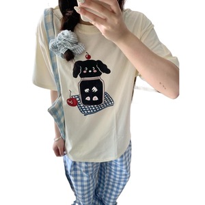漫画多用途カレッジスタイル半袖Tシャツ犬プリントルーズトップファッション新しいスタイル多用途イントレンド
