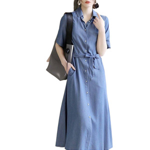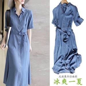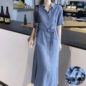 テンセルデニムドレス 2025 春半袖新作大きいサイズ痩身ミドル丈カーディガンウインドブレーカースカート女性用