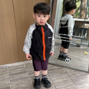 子供用軽量日焼け止め服 2025 年夏新作男の子ベビーファッショナブルなスタイルのスプライシングフード付きジャケット