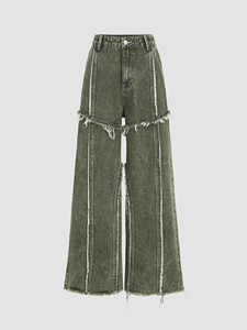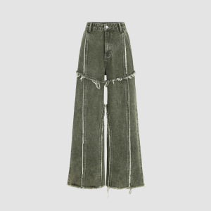 寧藝卓 韓国風アメリカンストリート ウォッシュ加工 ダメージ加工 ローエッジ ストレート パッチワーク デニムパンツ レディース ジーンズ 春新作