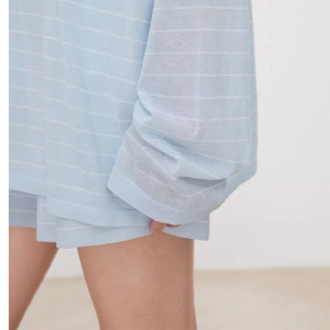 夏の新作ストライプウォーキングスーツ軽量トリアセテート綿糸人気日焼け止めケンドゥーTシャツ/ウエストゴムショーツ
