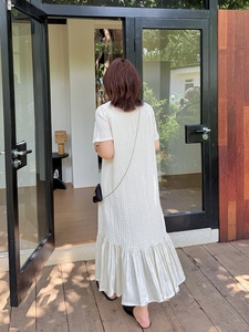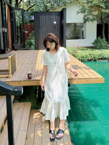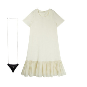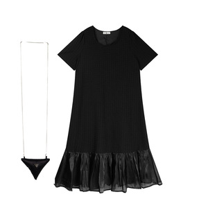 Shuangtian プラスサイズの女性の 2025 新しい夏フレンチファットガールテクスチャーシフォンスプライシングドレス 8965