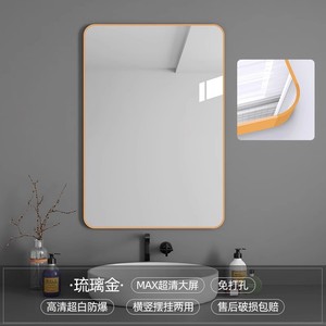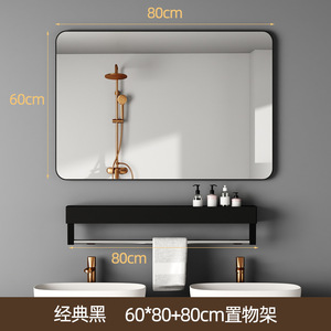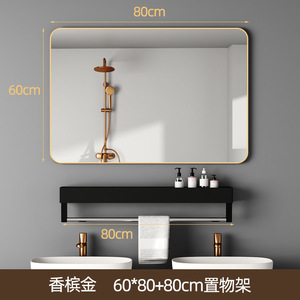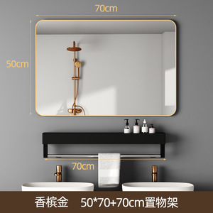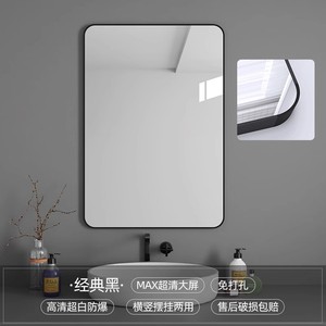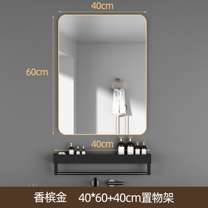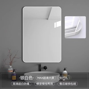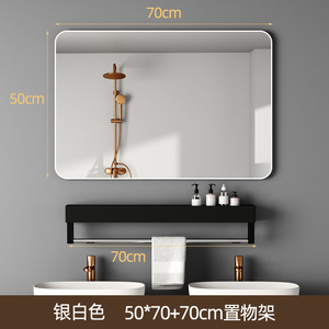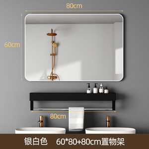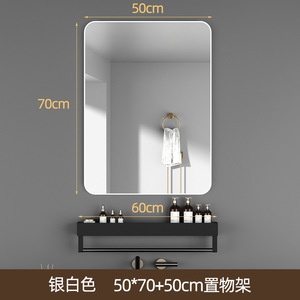 壁に貼り付ける収納ラック付きバスルームミラー、粘着式バスルームシンク、トイレ、パンチフリー、防曇シルバーミラー、壁掛け
