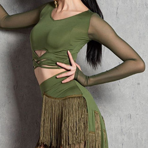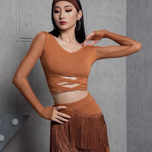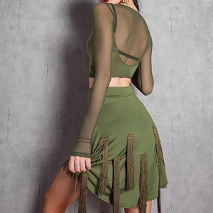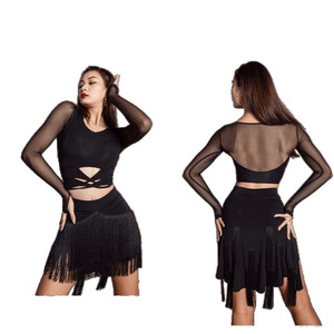 ラテンダンススカートトップス練習服女性ダンスパンツ新しいプロのダンス服スーツ不規則なタッセルスカート
