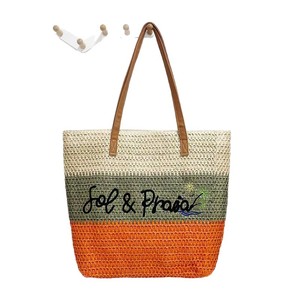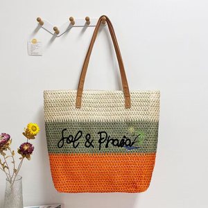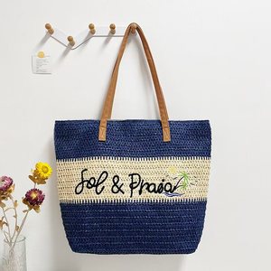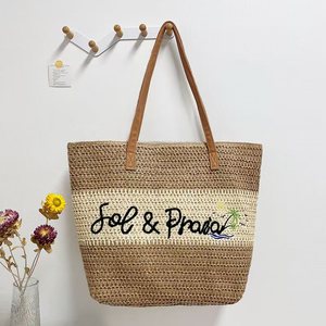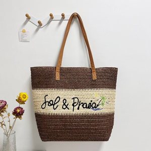 新款字母刺绣款纸草编织沙滩包大容量百搭时尚旅游度假手提托特包